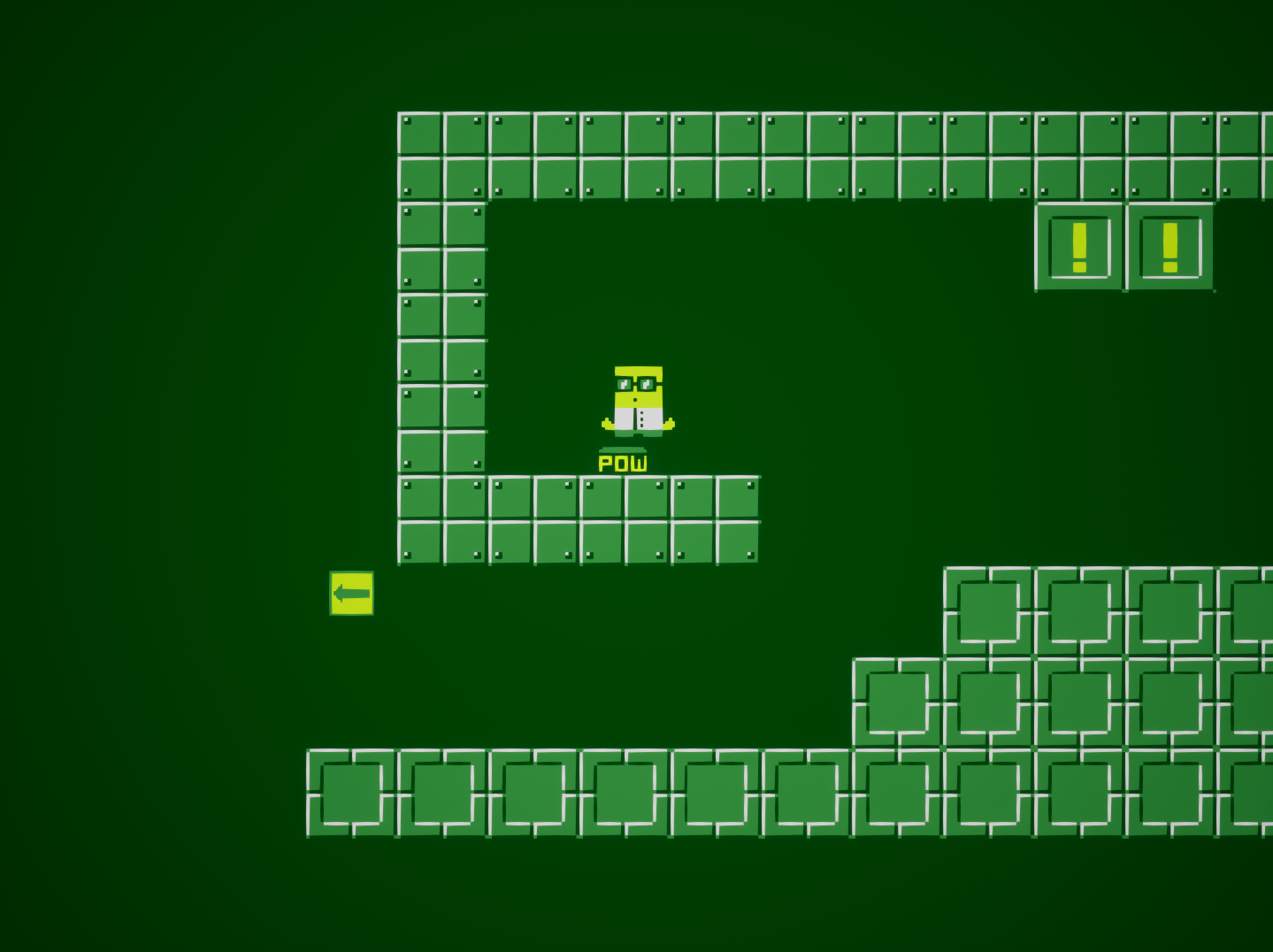 Plongez dans un univers rétro en pixel art vert fluo et guidez ce savant fou à travers des niveaux remplis d'obstacles, de pièges mécaniques et de blocs destructibles, dans une aventure aussi frénétique que chaotique. Chaque impact au sol, chaque bouton pressé et chaque saut représente une menace pour l'environnement… et une occasion de s'enfoncer toujours plus profondément dans la folie.